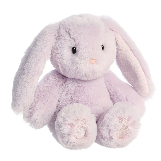 Enter the Spring season with a sweet and precious take on a classic bunny rabbit. Brulee Bunny is a 9-inch plush with lavender colored fur, big floppy ears and a fluffy poof tail. With embroidered pink paw prints on its feet, this cute bunny is ready to bounce into some Spring fun!