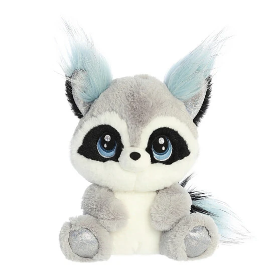 Enter a world where whimsy and fantasy combine into adorably dazzling characters – introducing Aurora's Enchanted series. A collection filled with pastels, accented fluff, and sparkles, you can't help but be mesmerized by the design of each animal. For added glimmer and shine, there are two gemstones on the plush's eyes that add even more enchantment. This Rosette Raccoon is a silver grey with sparkles on its footpads and inner ears.