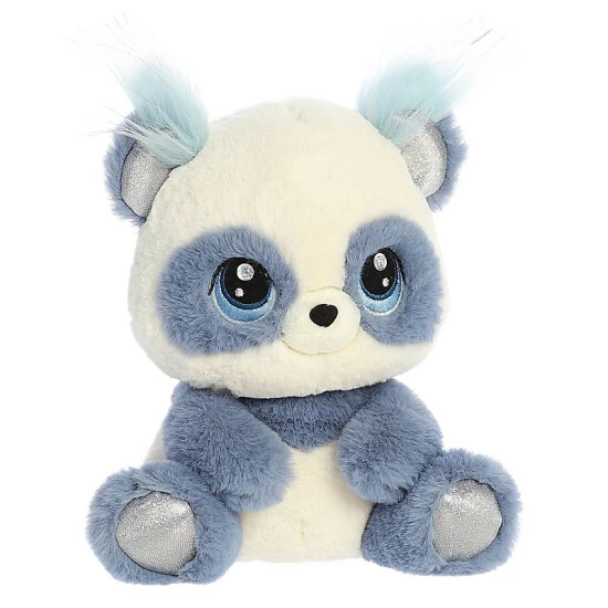 Enter a world where whimsy and fantasy combine into adorably dazzling characters – introducing Aurora's Enchanted series. A collection filled with pastels, accented fluff, and sparkles, you can't help but be mesmerized by the design of each animal. For added glimmer and shine, there are two gemstones on the plush's eyes that add even more enchantment. This Peony Panda is a rich powder blue with sparkles on its footpads and inner ears.