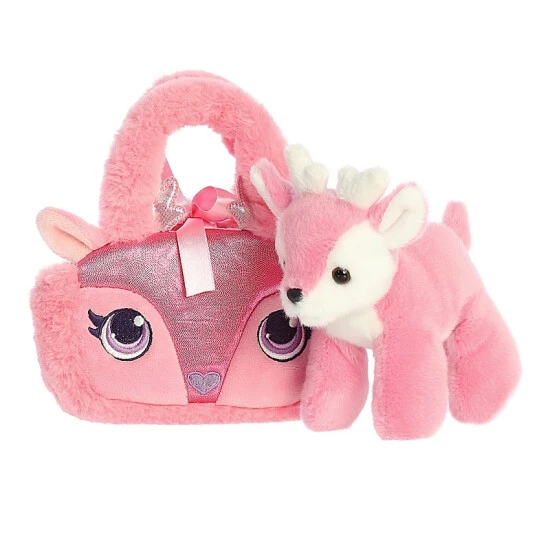 Fancy Pals from Aurora feature carriers with small pets inside! They are available in a wide variety of different styles, and colors that are sure to please anyone! This carrier is a perfect shade of pink for our perfect little pink and white fawn to nestle in. Small and compact, it is perfect for anyone to carry around!