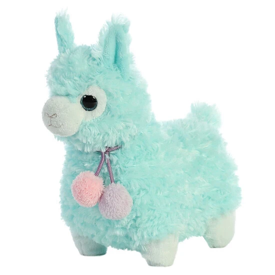 Cute and chunky, though this Llama is small, it packs a lot of drama Kiwi is a light blue Llama and she has a pink and purple pom pom collar