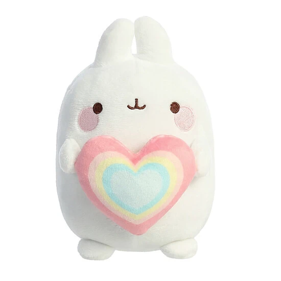 Molang is a kind and affectionate bunny rabbit ready to play! This Molang plush features an adorable rainbow heart and its signature bright white body with the cutest pink flushed cheeks