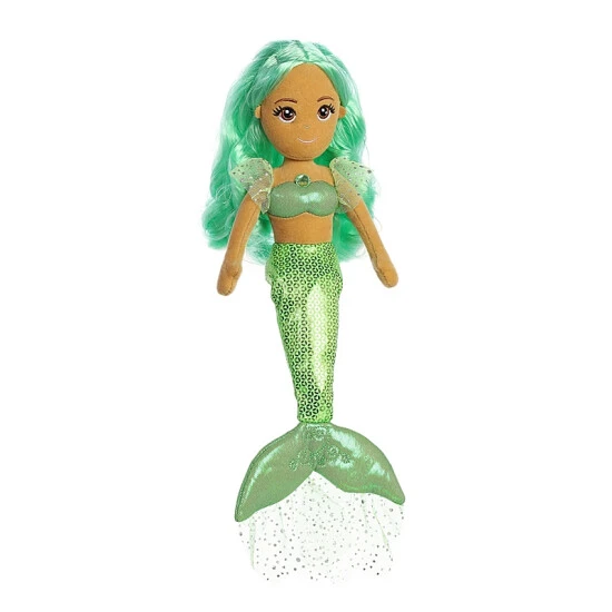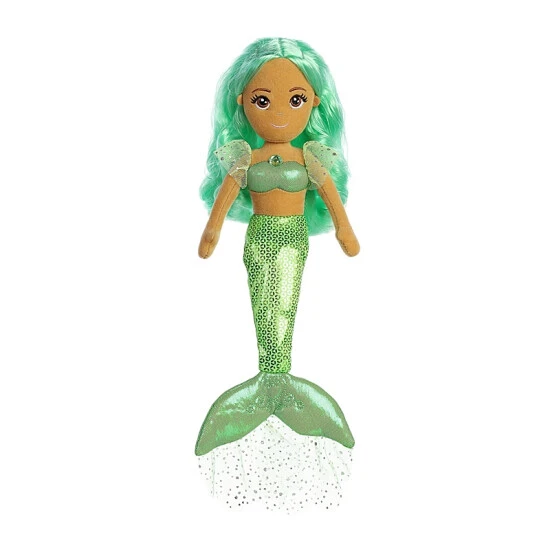 Feel the healing power from Crystal Sparkles Emerald! Crystal Sparkles Emerald from Sea Sparkles features a green mermaid with a unique take on the healing crystals. She wears a beautiful emerald gem in the middle of her heart and also has beautiful green mylar hair you can comb!