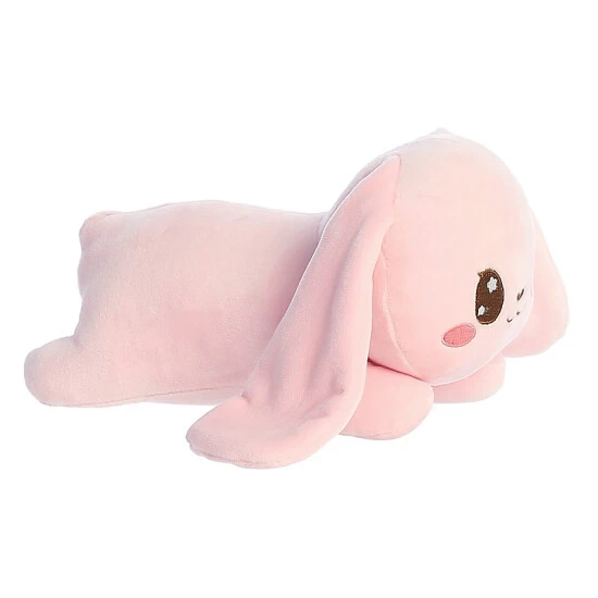 Have a super soft, super squishy plush friend by your side while you enjoy the fun festivities of Spring! This squishy bunny is a pastel pink with a wide-eyed smile embroidered on its face. Laying on its tummy for a sweet resting design, this bunny is so squishy you can't help but cuddle and snuggle with it at all times.